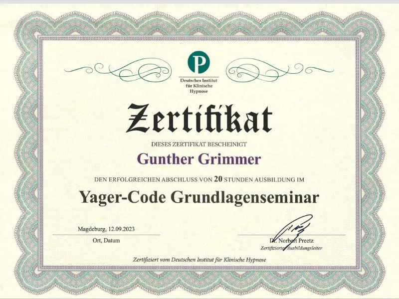 Gunther Grimmer, erfahrener Hypnotiseur und Psychologischer Berater, nutzt die energetische Hypnose für tiefere Bewusstseinszustände und positive Veränderungen bei seinen Klienten. Seine spezialisierte Methode erlaubt es ihm, spezifische Bedürfnisse und Ziele anzusprechen und individuell zu unterstützen. Seine Praxis bietet spezielle Sitzungen für Raucherentwöhnung, Gewichtsreduktion, Reinkarnationstherapie und andere spezifische Themen an.